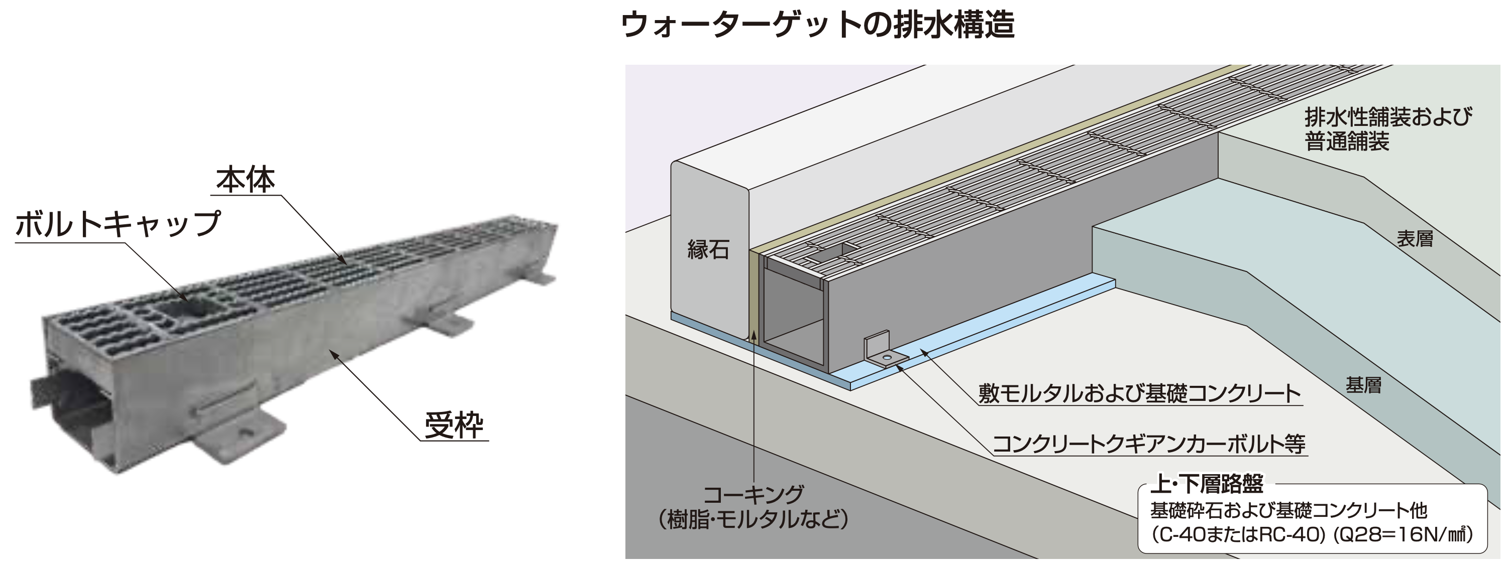 スマート排水システム「ウォーターゲット」は耐久性とコストパフォーマンスに優れた狭小幅の排水システムです。優れた排水能力を持ち、軽量で作業性が高く、工事を短縮できます。排水性舗装やインターロッキングブロック舗装に最適です!