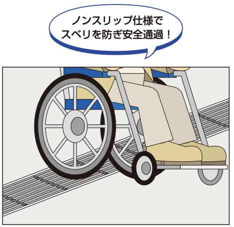 主部材にゴム加工を施したゴムグレーチングの製作も可能です。静かで安全性を重視したグレーチングです。