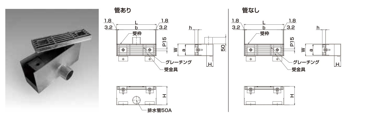 グレーチング | 受枠 | 管タイプ | セット 重量 kg |