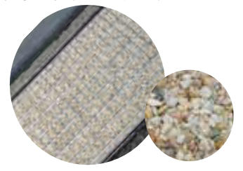 透水性天然堰石舗装材を充填したストーンマテリアルグレーチングの製作も可能です。街並みの景観に合わせて多彩な天然石から選べます。